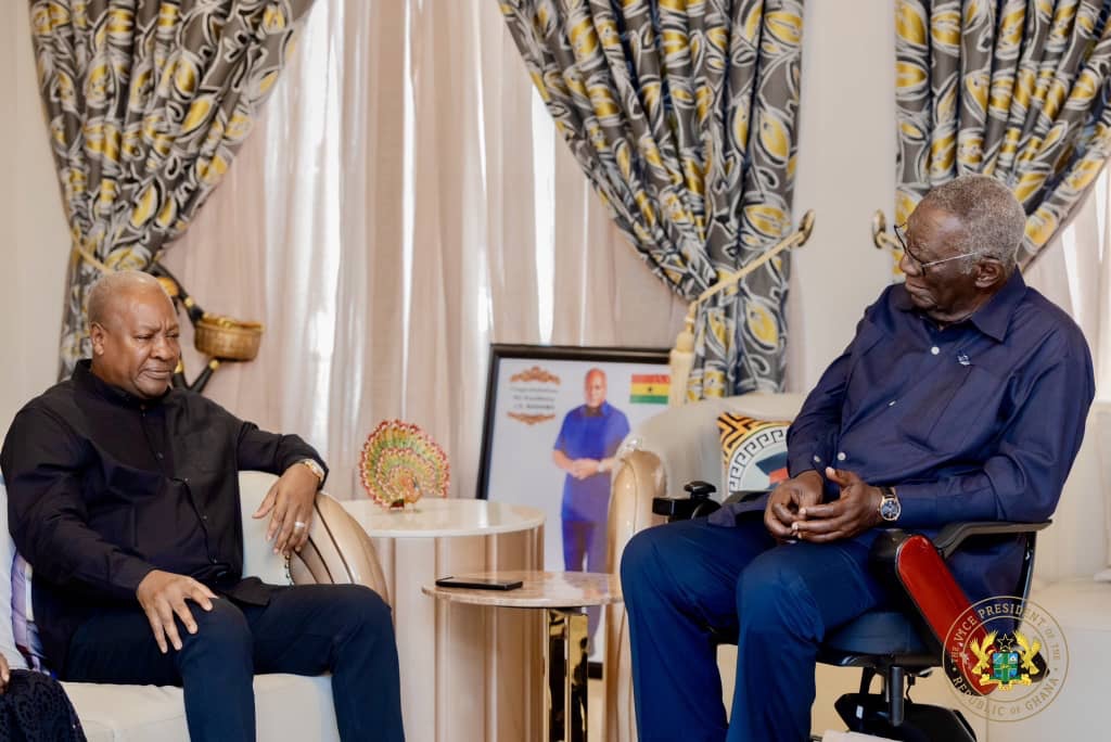 Former President John Agyekum Kufuor paid a visit to President John Dramani Mahama at his residence to express his condolences following the recent military helicopter crash that claimed the lives of eight individuals.