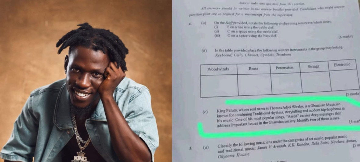 The 2025 Basic Education Certificate Examination (BECE) in Ghana took an unexpected turn when a Creative Arts and Design question featuring the popular musician King Paluta went viral. The question challenged students to analyze various aspects of King Paluta’s work, sparking discussions among educators, students, and fans alike.